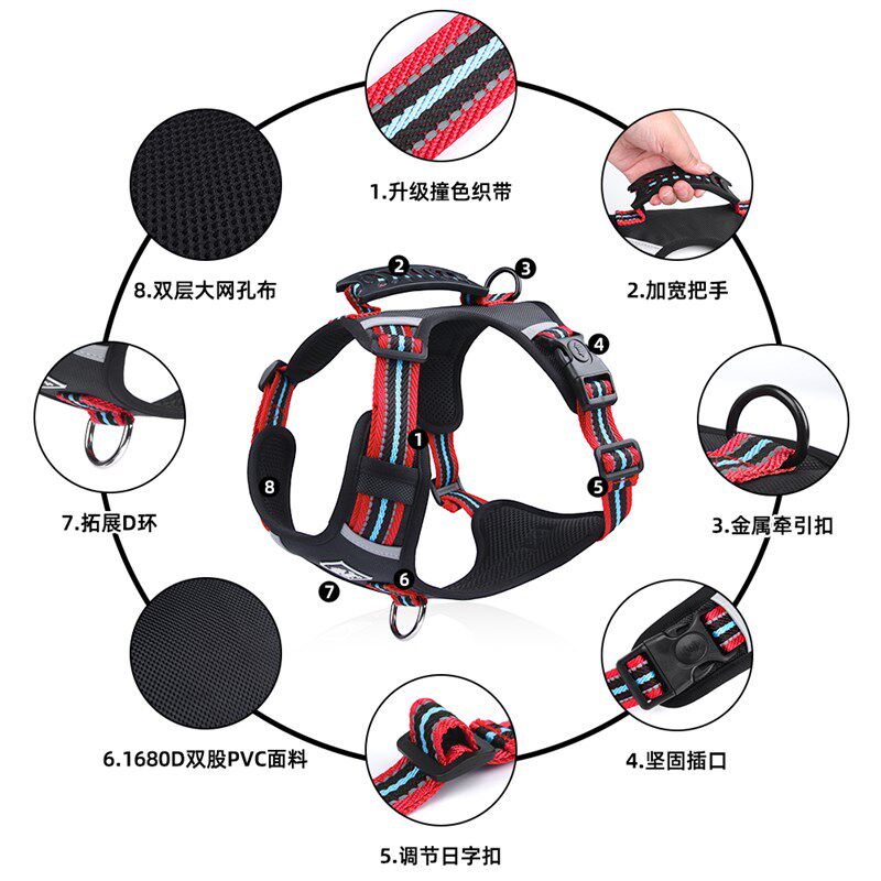 📚 狗狗牵引绳中大型犬柴犬胸背带外出防挣脱背心式遛狗绳宠物狗链子