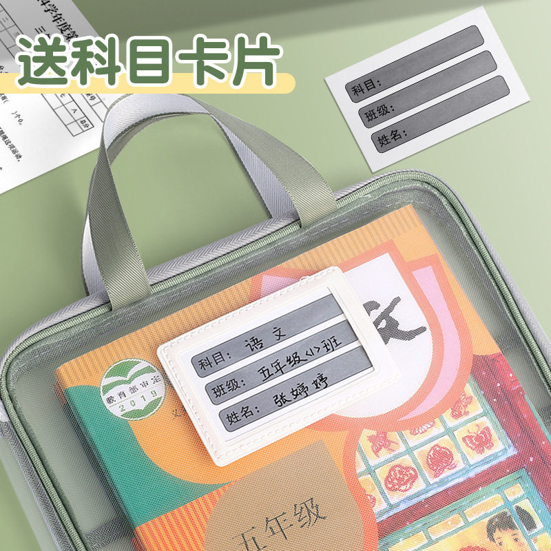 📚 L型分类科目文件袋横款收纳资料袋小学生网纱大开口手拎书袋义乌