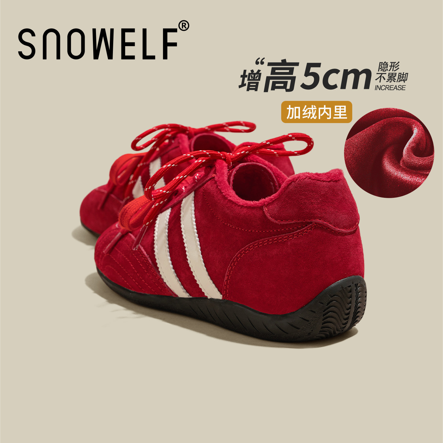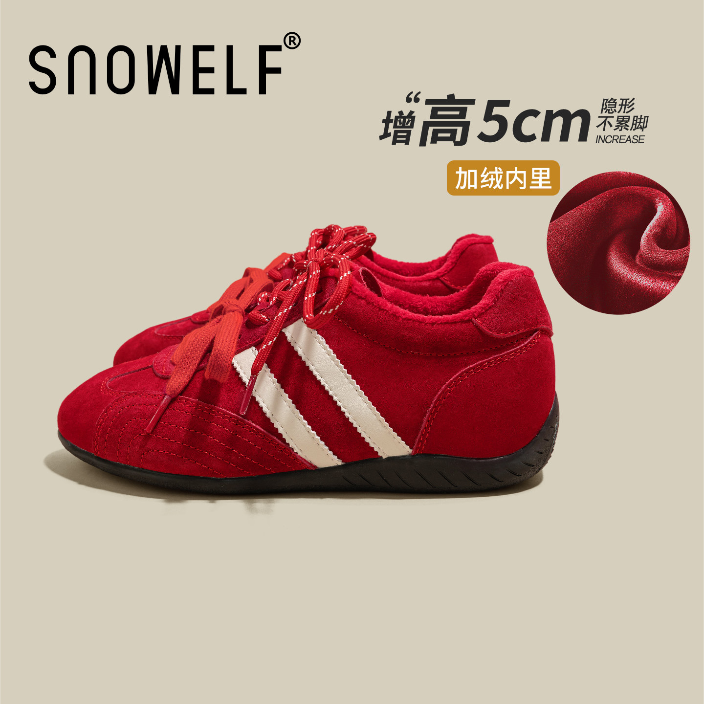 📚 厚底德训鞋女款2026新款春季百搭红色鞋子内增高阿甘鞋休闲运动鞋