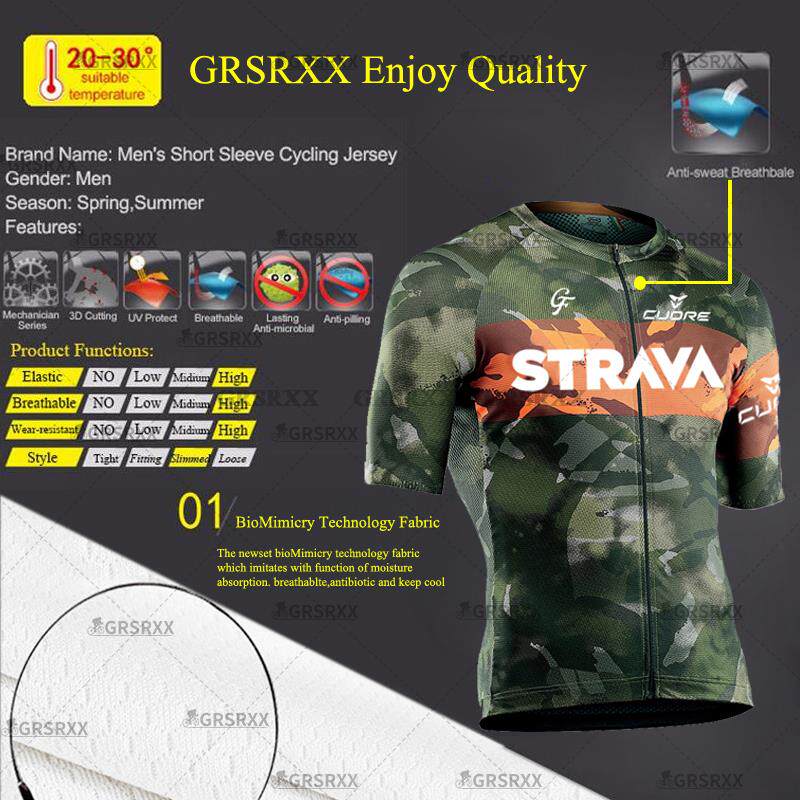📚 STRAVA Cycling Jersey Men Short Sleeve Shirt Summer Anti-Swe
