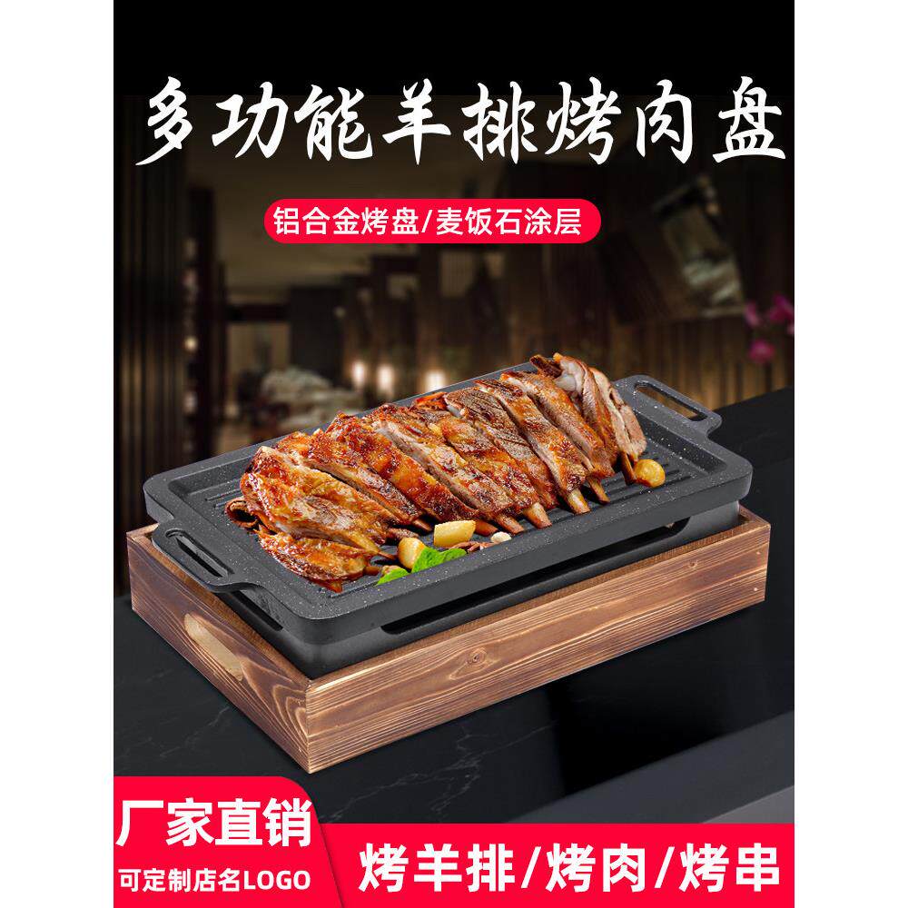 📚 商用热串烧烤酒精加热保温炉长方形羊排烤盘铝合金烤肉盘韩式餐厅