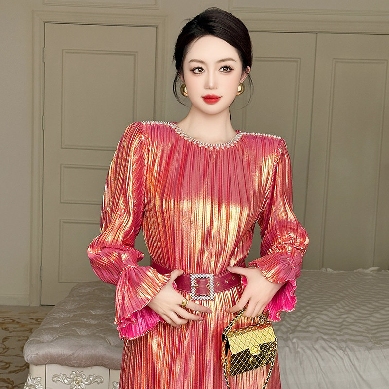 📚 独特设计喇叭袖扎染条纹连衣裙绝美女神范气质收腰短款a字裙秋冬