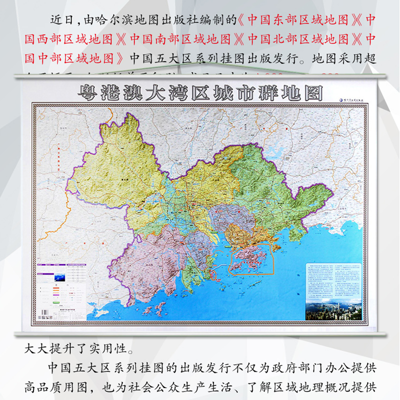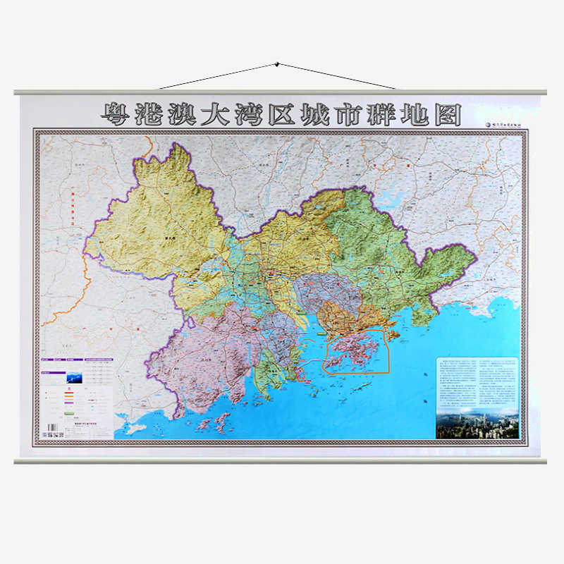 📚 粤港澳大湾区城市群地图挂图 珠江三角洲城市珠海香港澳门群地区地图 约1.4x1米 双面覆膜防水 办公家用地图挂墙地图