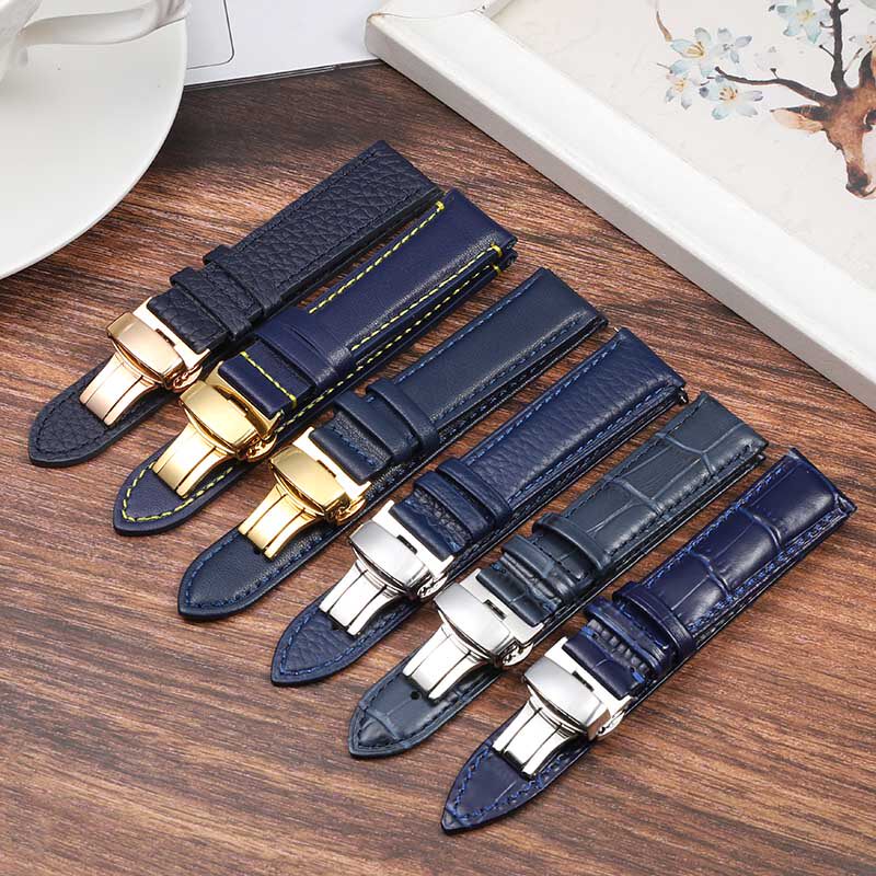 📚 适配卡西欧真皮手表带男edifice系列EFR-539L蓝色柔软牛皮带23mm