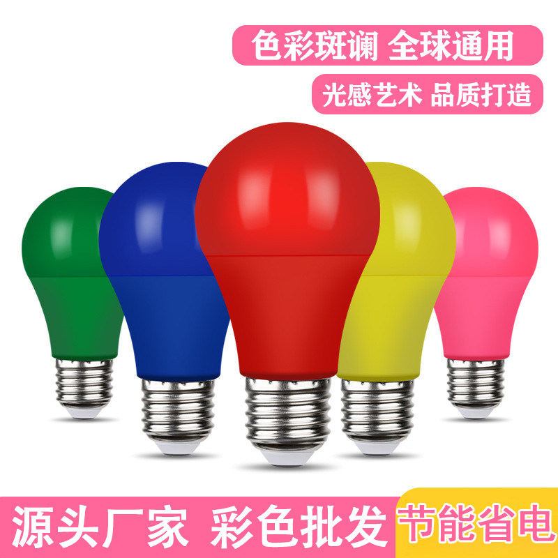 📚 LED圆形彩泡大螺口E27户外室内装饰红橙黄绿蓝紫色节能七彩色灯泡