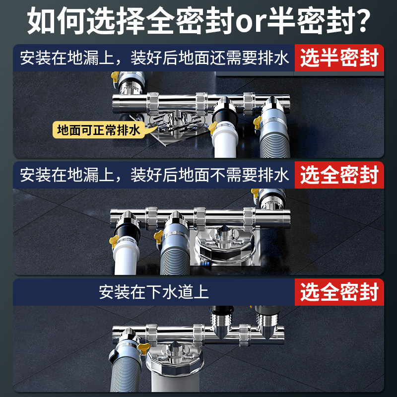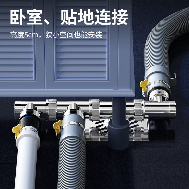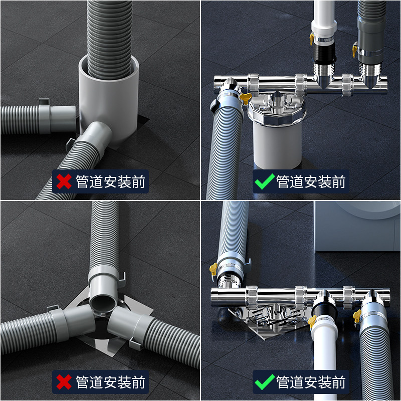 📚 洗衣机排下水管道三头通地漏三通接头四通排水管三合一两接口专用