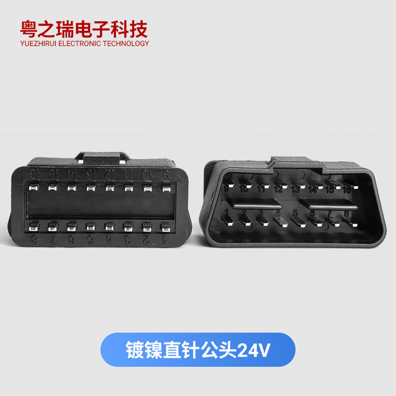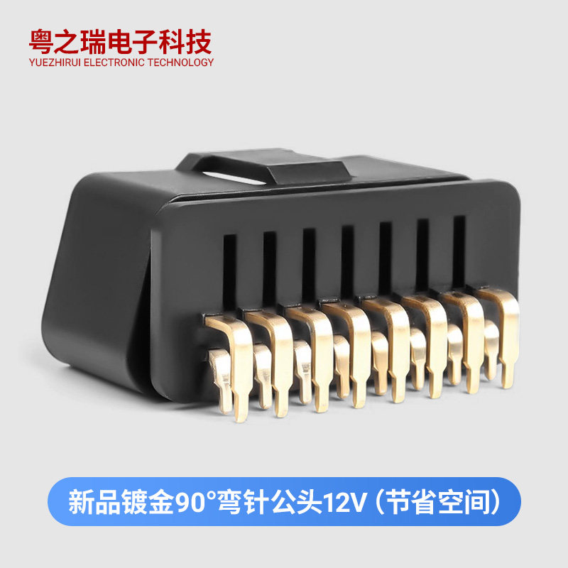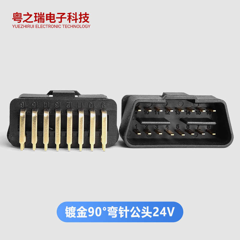 📚 汽车OBD2公头16pin连接器镀金90°弯针母头obd插头外壳J1962M