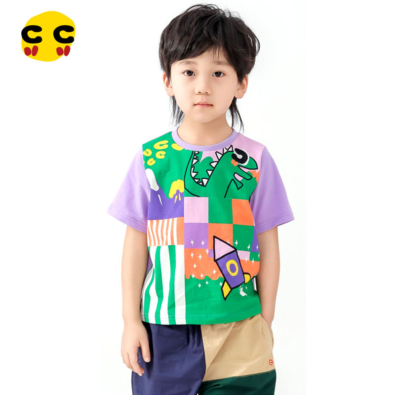 📚 clanc潮牌童装2024夏季新款儿童彩色印花薄款洋气半袖男童短袖T恤