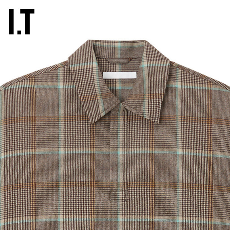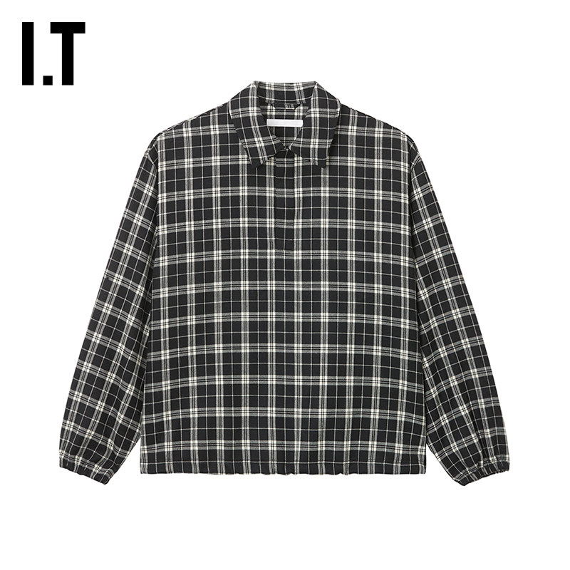 📚 IT SOPH. SOPHNET.男装格纹长袖上衣新款复古气质翻领格子套头衫
