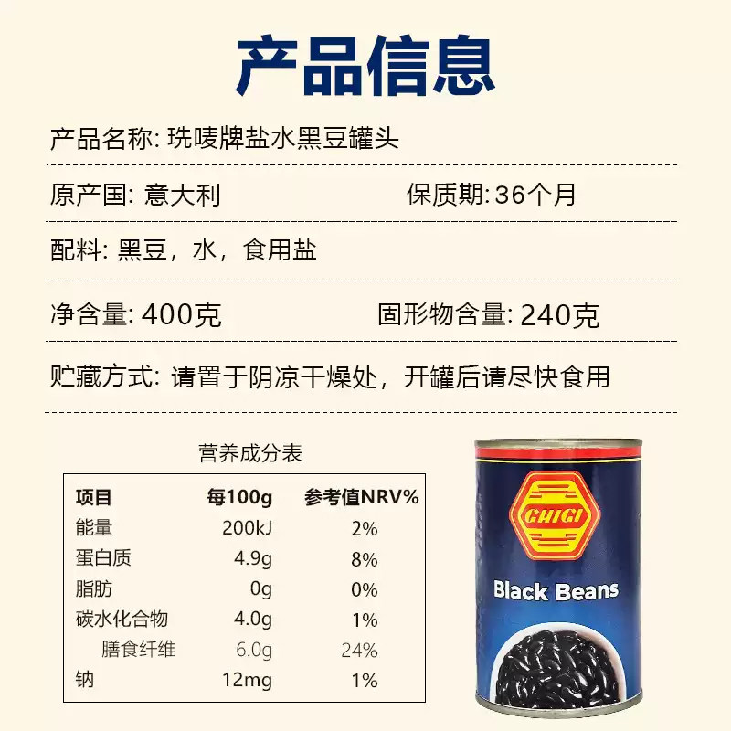 📚 意大利进口珗唛黑豆罐头400g盐水黑豆即食拌沙拉 black beans