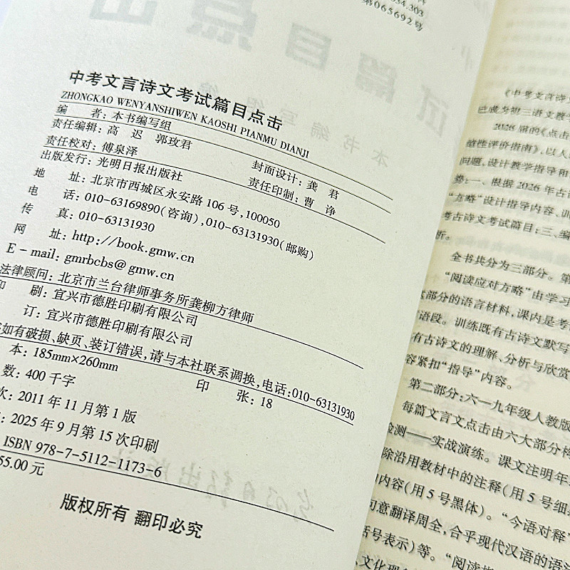 📚 中考文言诗文考试篇目点击书+参考答案2026届新版上海初中文言文中考语文点击 九年级中考古诗文典籍文言文光明日报出版社