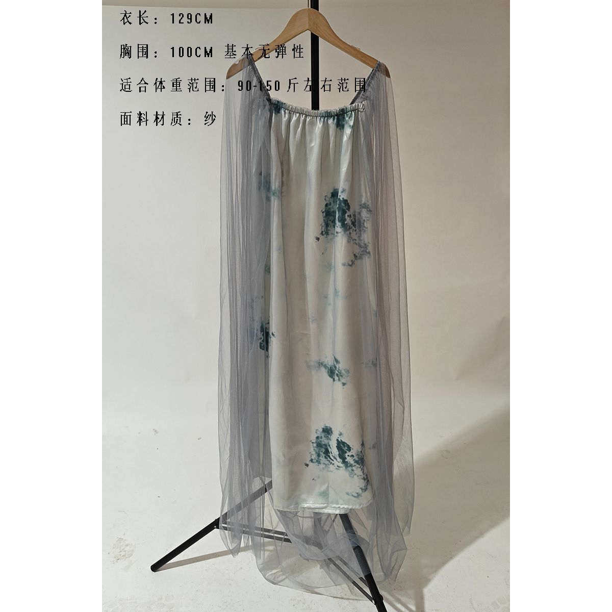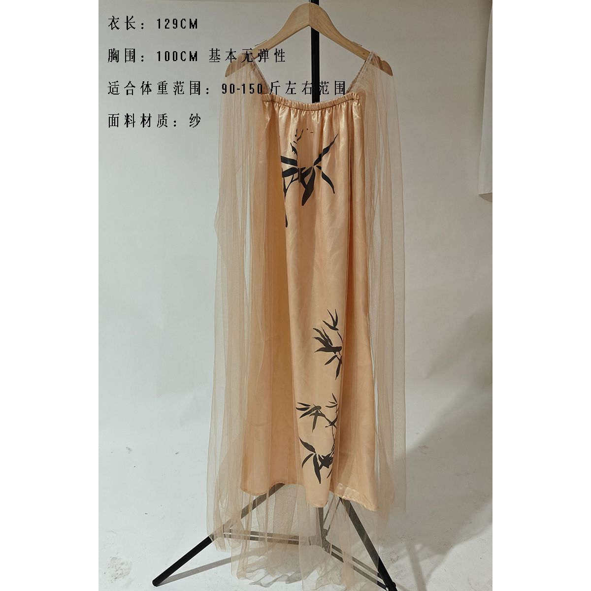 📚 水墨画国风抹胸一字肩连衣裙长裙仙女新中式晨袍影楼孕妇拍照服装