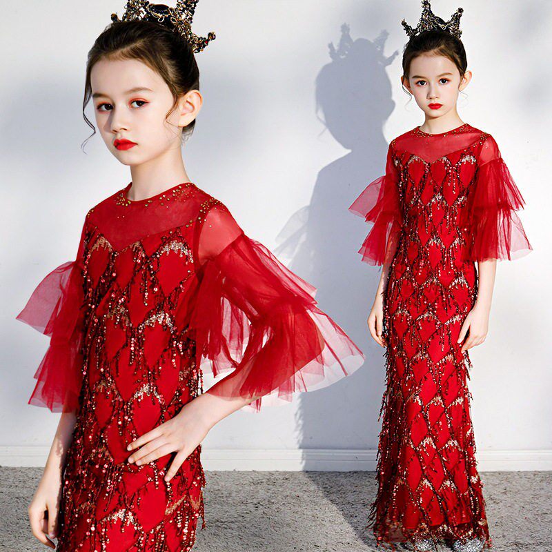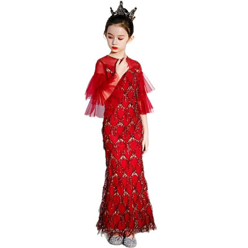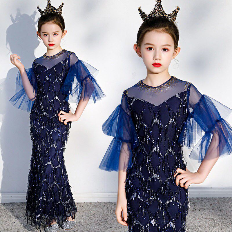 📚 高端闪亮女童晚礼服独唱主持人鱼尾包臀连衣裙气质中大儿童演出服