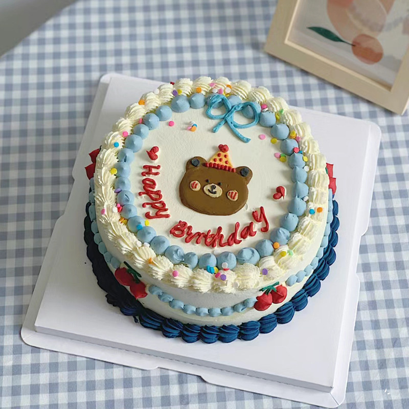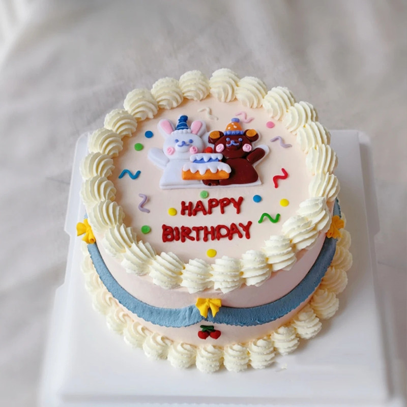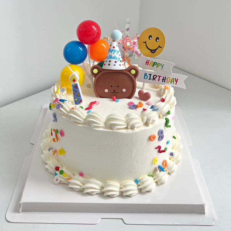 📚 小熊蛋糕装饰摆件软陶派对帽子小猪插件儿童宝宝周岁生日派对软胶