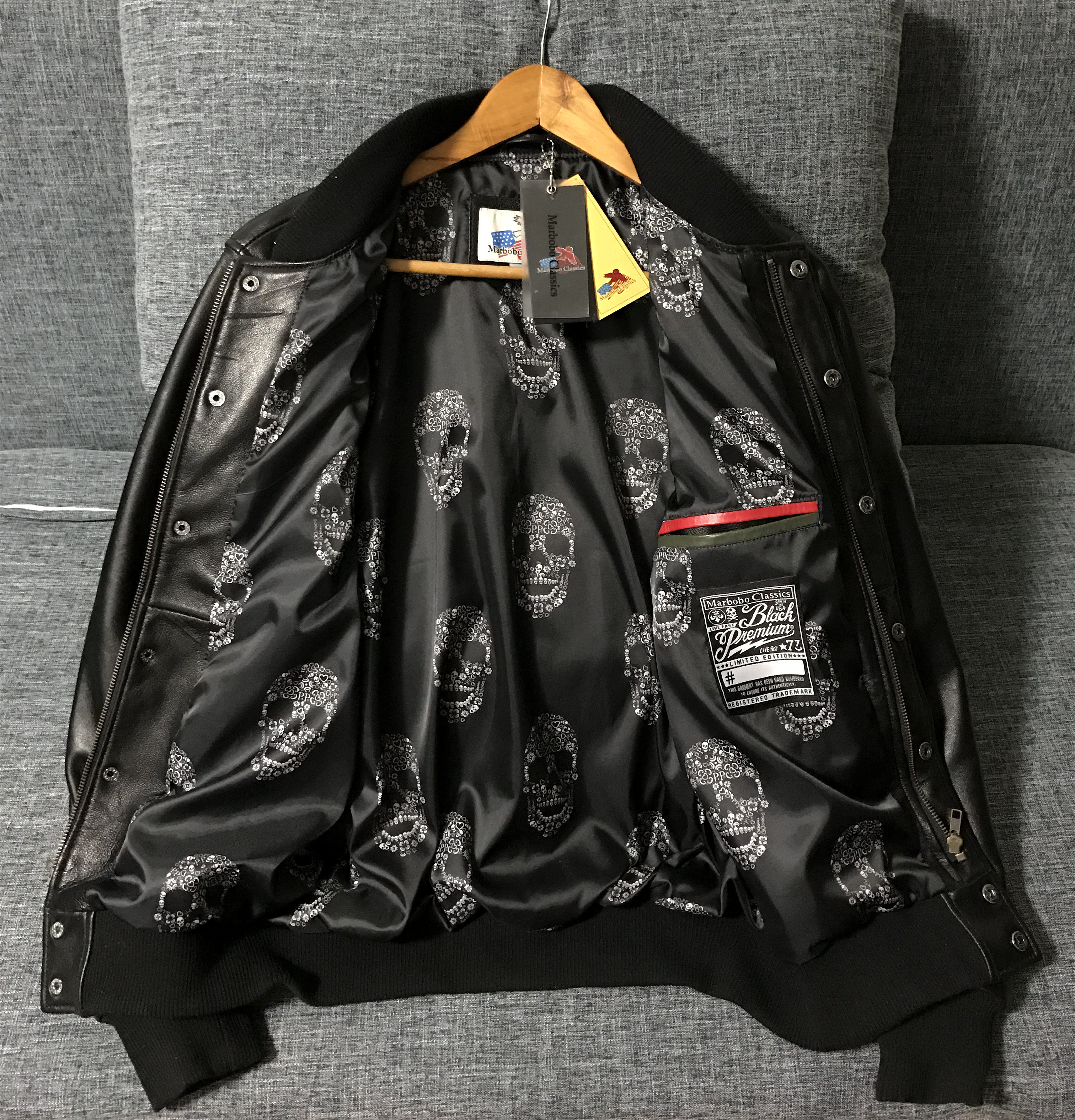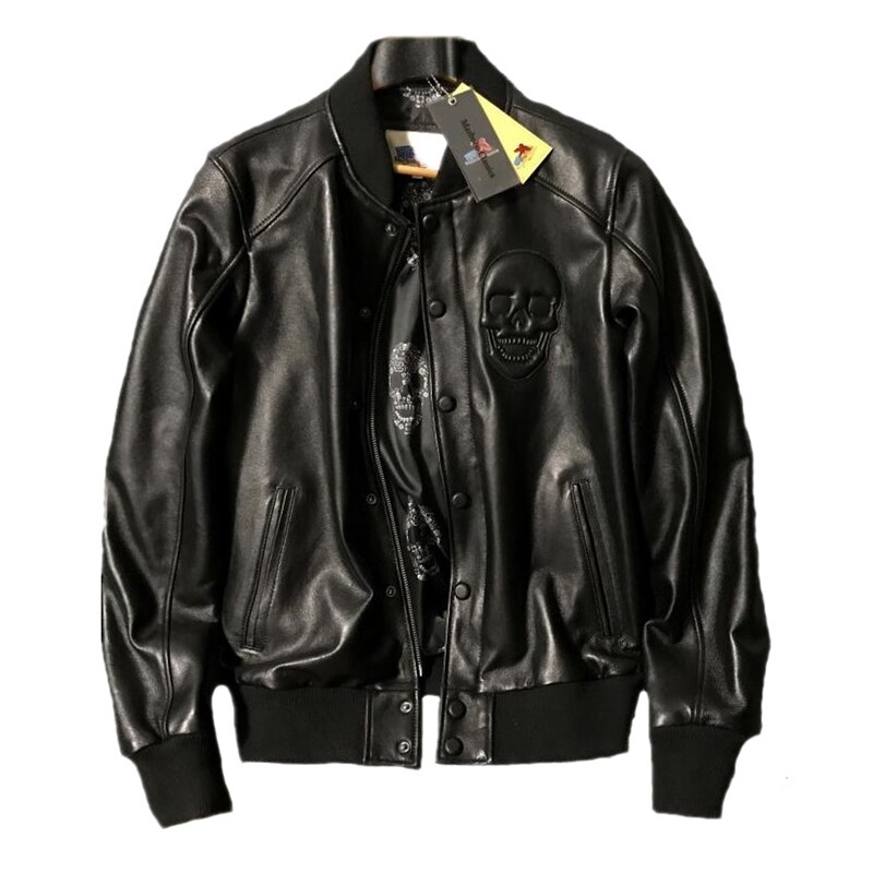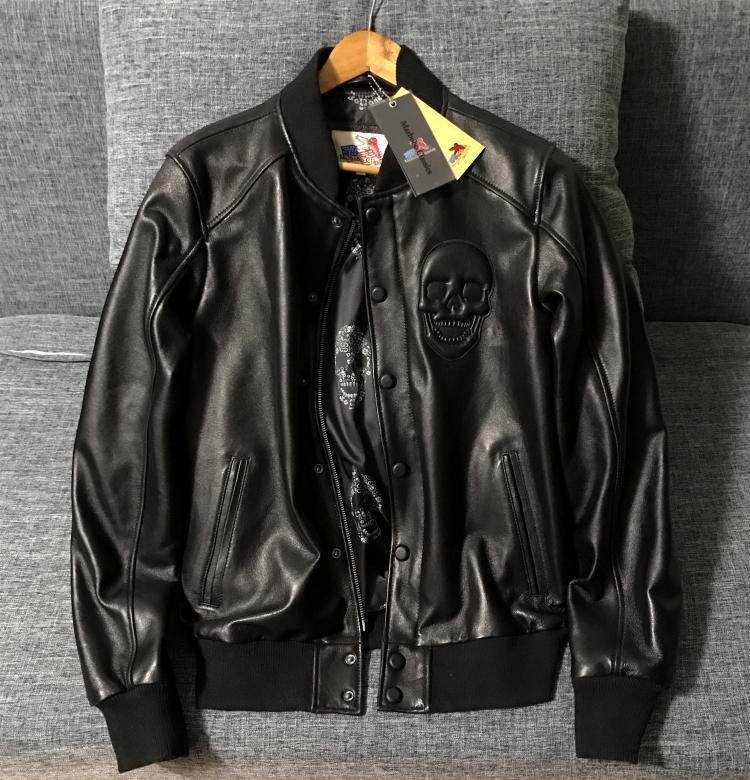 📚 全皮螺纹版非库存积压纯铜拉链整皮无破版骷髅头绵羊皮真皮皮衣男
