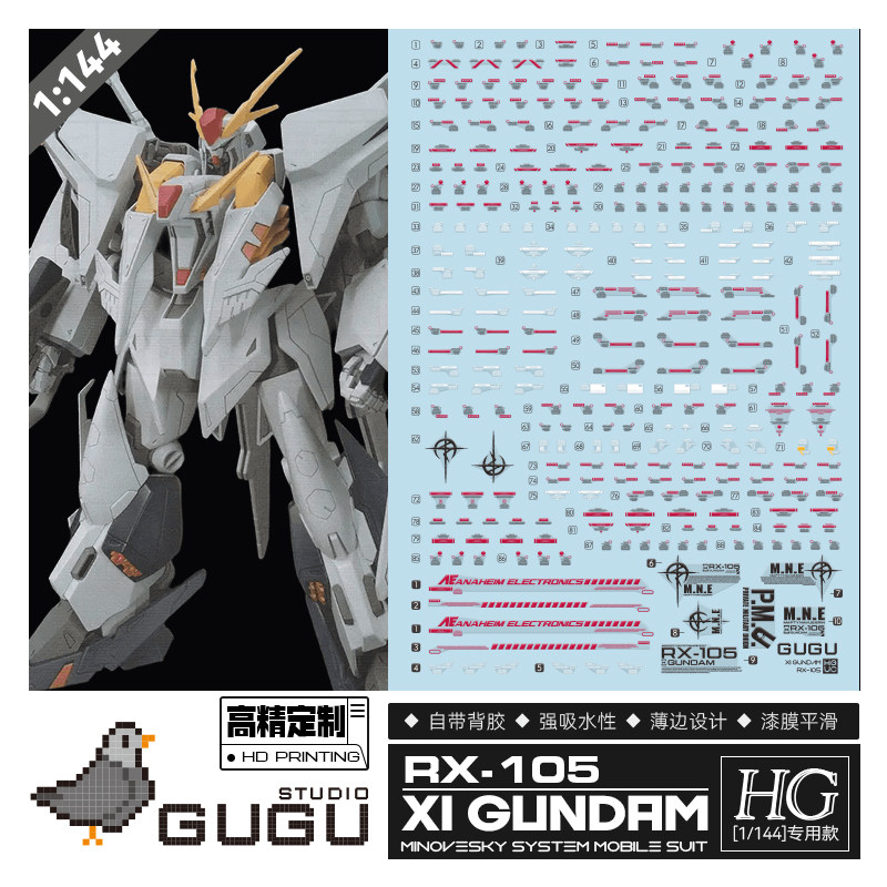 📚 包邮 咕厂长 GUGU HG 1/144 柯西高达 RX-105 大白鹅 超清 水贴