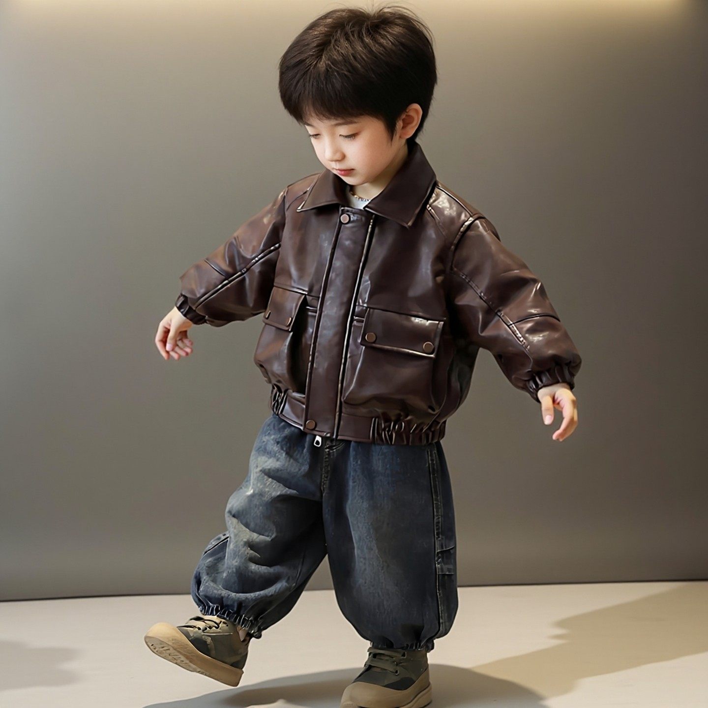 📚 男童皮衣外套机车风2026新款痞帅儿童夹克韩版洋气春秋季宝宝套装