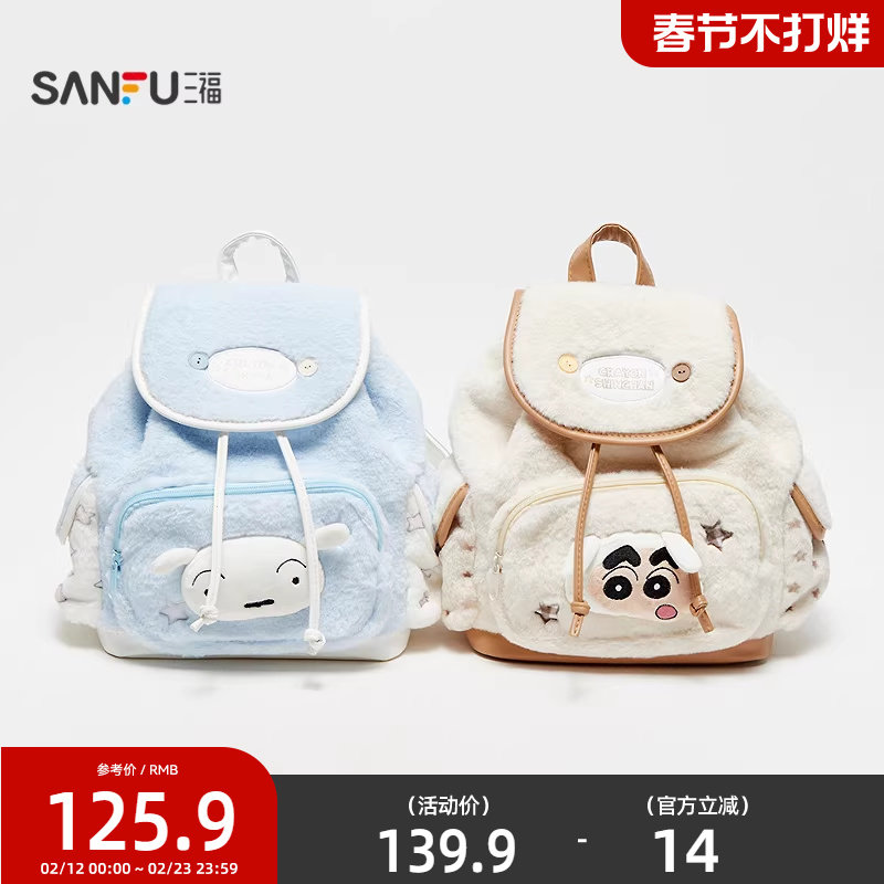 📚 三福蜡笔小新毛绒双肩包装饰袋 生活日用好物包包背包849365