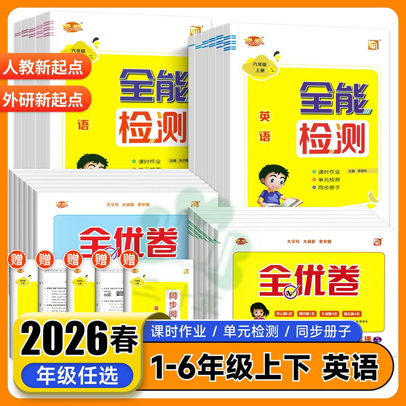 📚 2026新全能检测英语一二年级三四五六年级上册下册语文数学人教/外研版1起点道德与法治科学课堂一课一练试卷测试卷期末测试全优卷