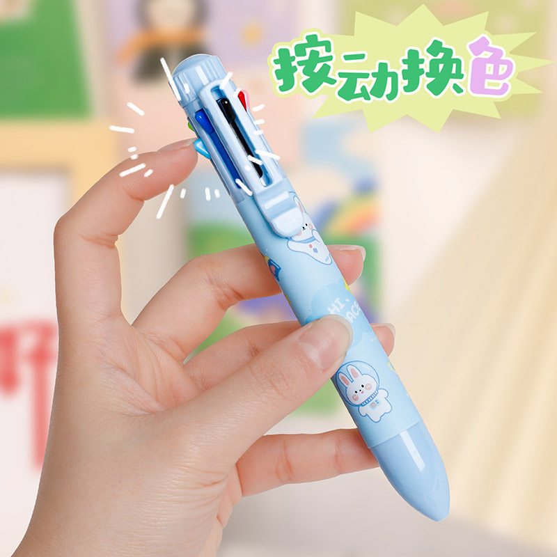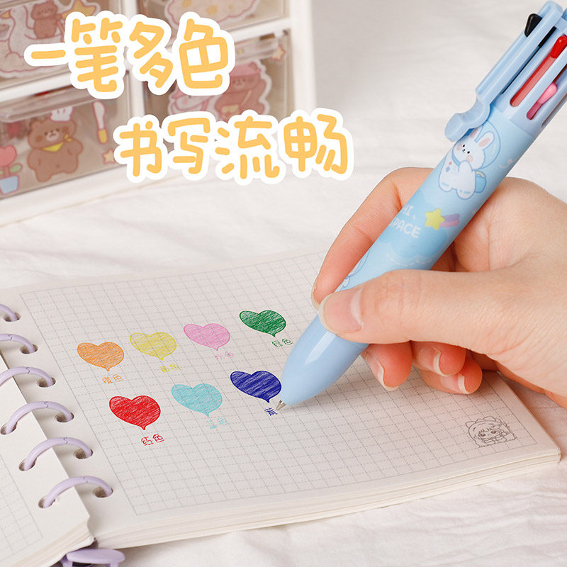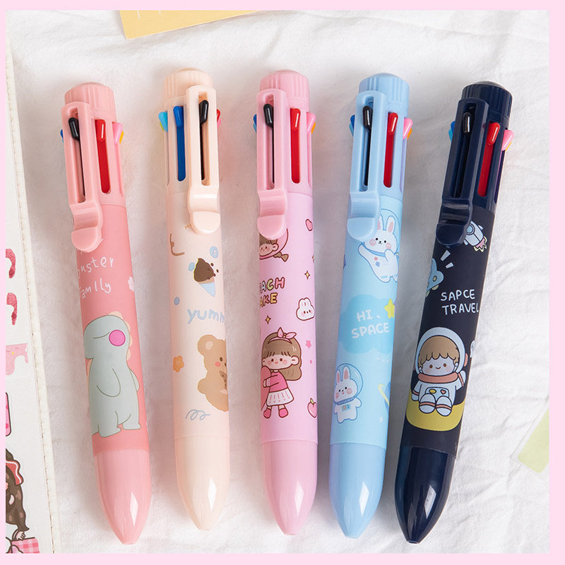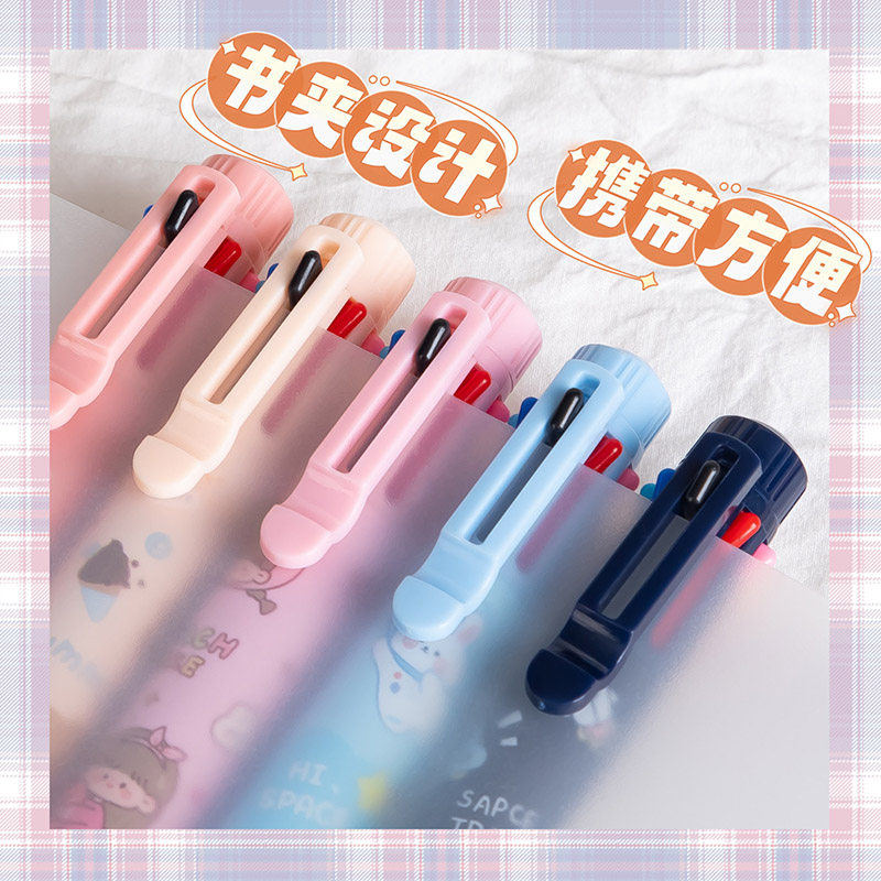 📚 多色圆珠笔可爱少女十色按压式多色合一做笔记学生专用多功能彩色油笔一笔多色记笔记专用四色五色红蓝黑8色
