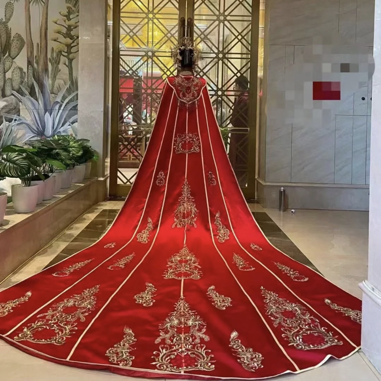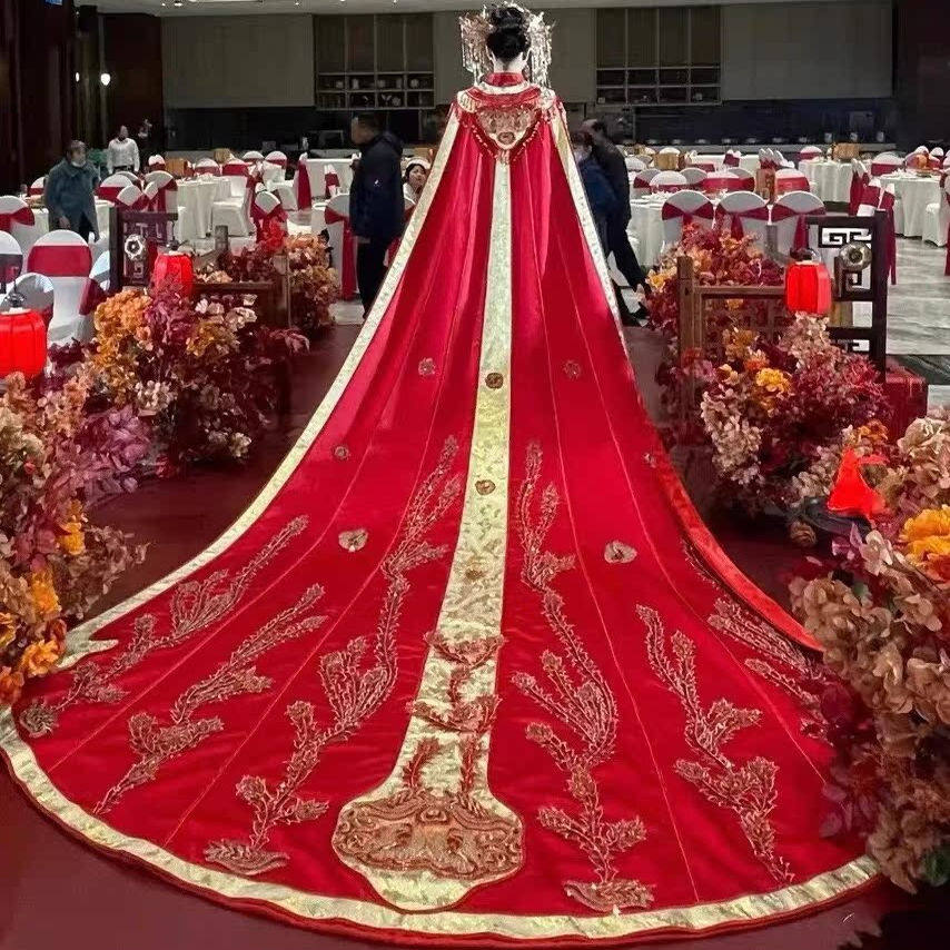 📚 出租中式婚服长披风外嫁女回娘家活动刺绣拖尾凤冠霞帔礼服披肩