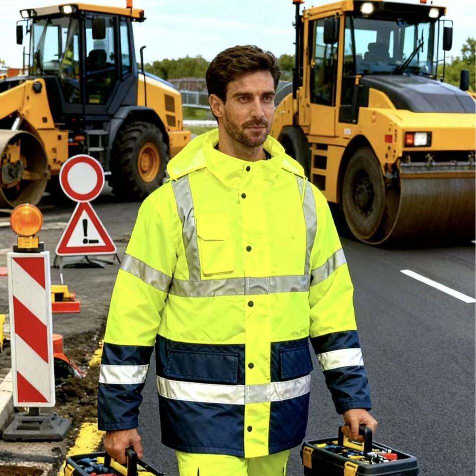 📚 加厚安全作业防护服可反光,能防防水SSW,带风反,光条能见度高