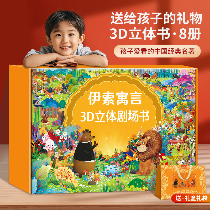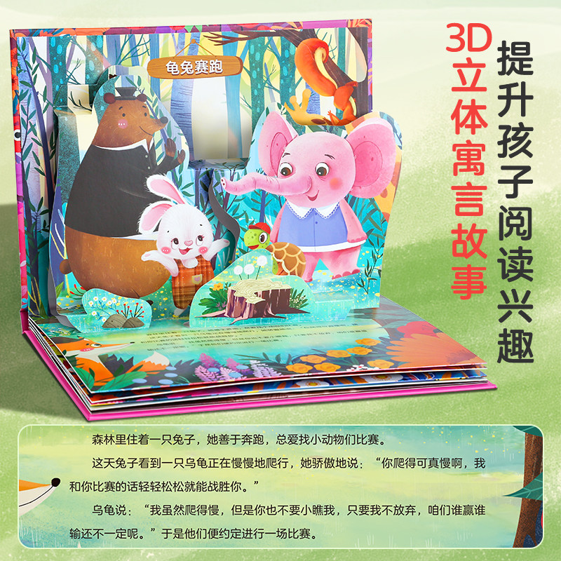 📚 伊索寓言立体剧场书礼盒装 童话故事书3d立体翻翻书幼儿园儿童绘本阅读迪士尼白雪公主小红帽灰姑娘3-4-6-8岁小女孩生日礼物书籍