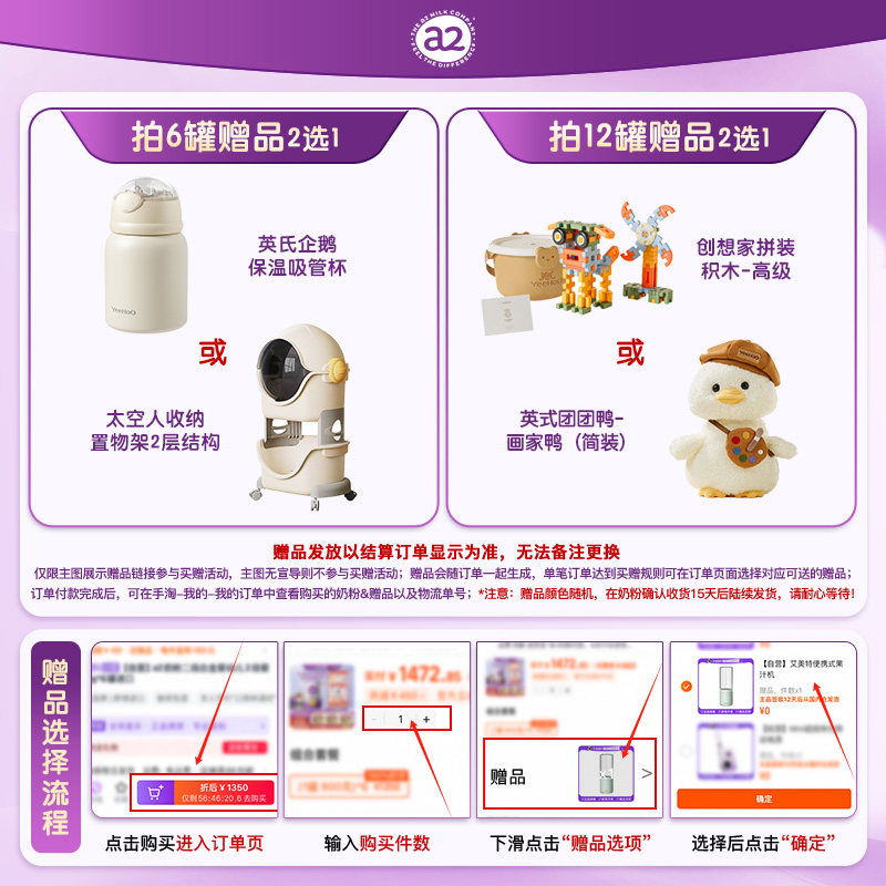 📚 【自营】a2紫白金二段配方婴幼儿牛奶粉宝宝乳粉900g*6罐