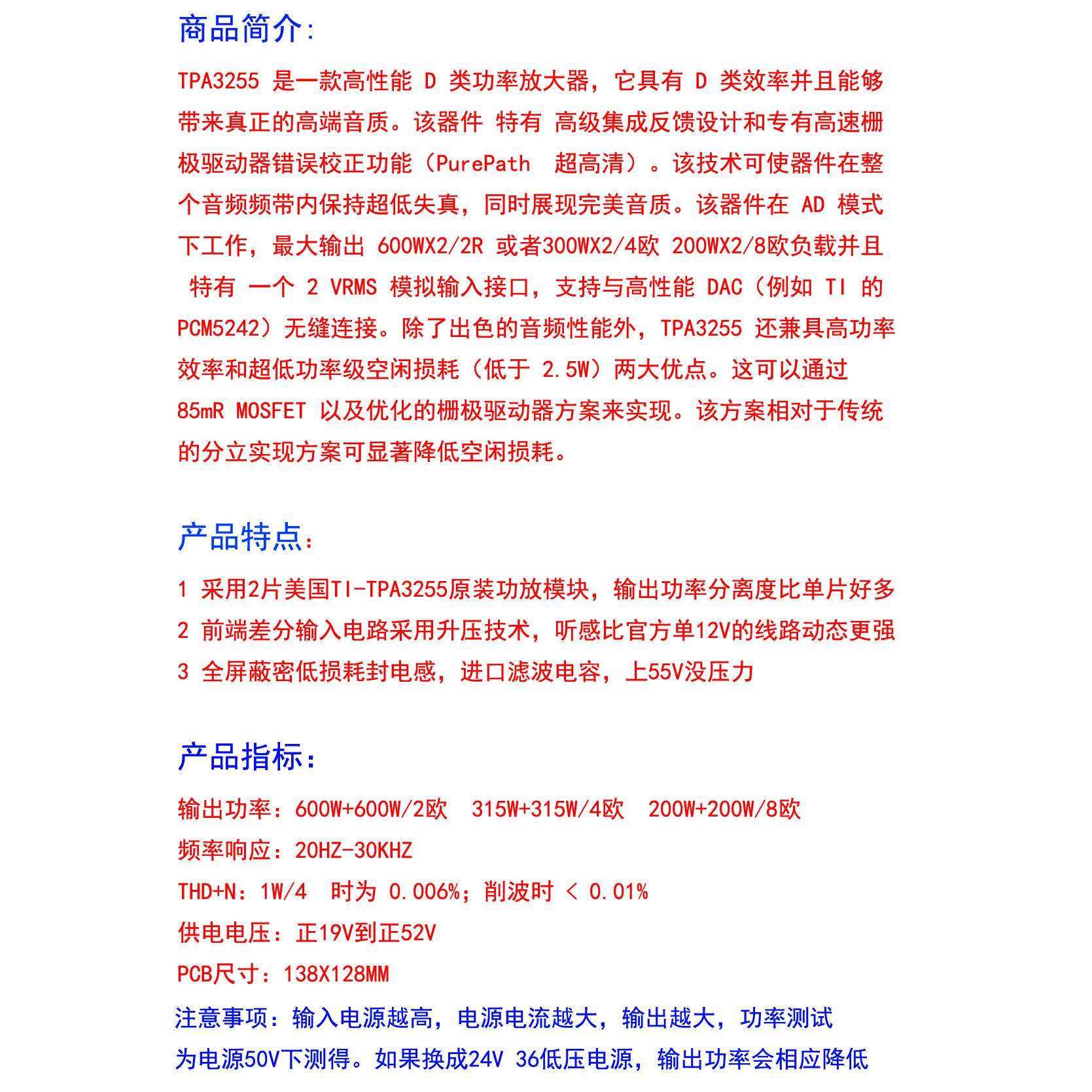 📚 SAMP-200双核心TPA3255发烧大功率2声道功放板600W+600W