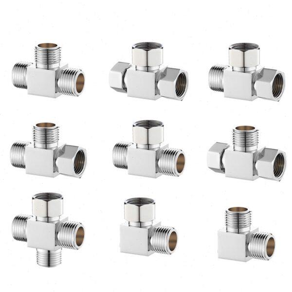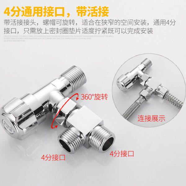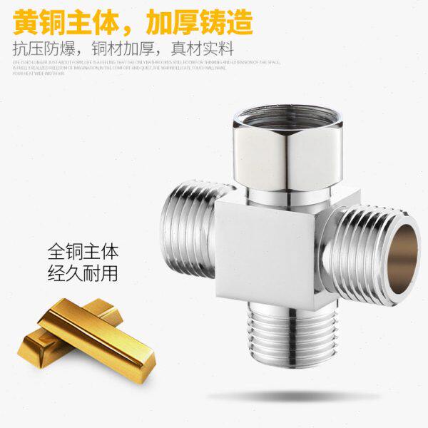 📚 四4分铜活接三头通角阀一进二出内外牙丝转接口分水阀分流器接头