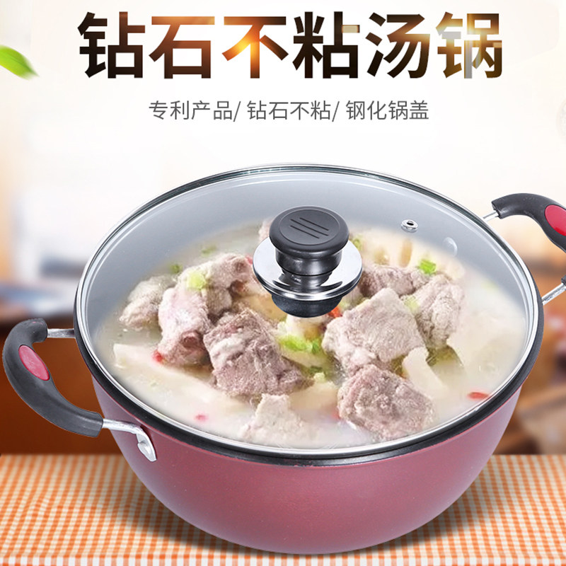 📚 汤锅不粘锅家用煮汤拉面锅燃气电磁炉通用双耳煲汤熬汤锅炖锅蒸锅