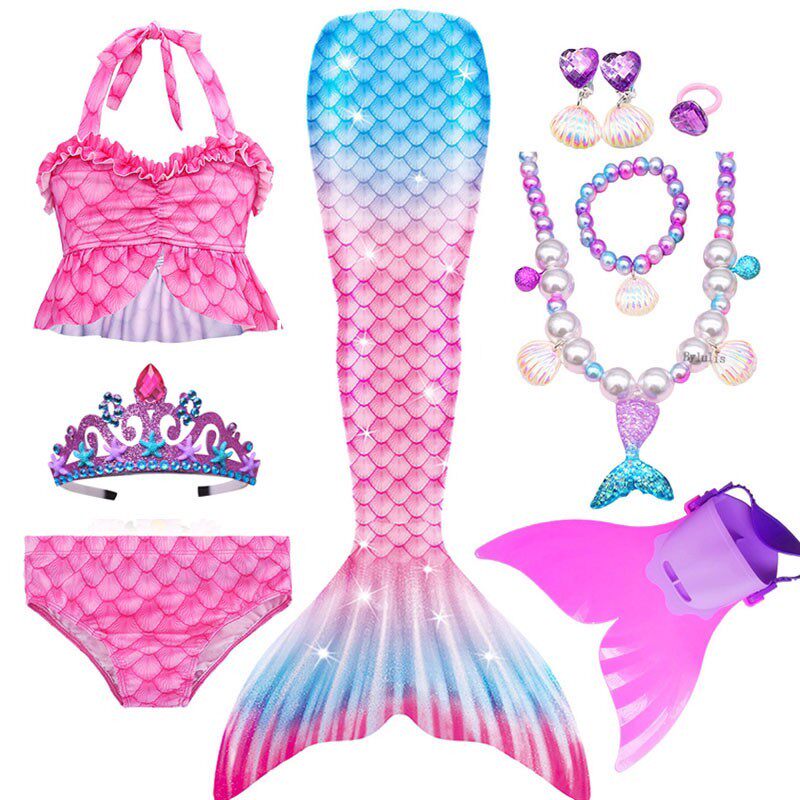 📚 美人鱼尾巴儿童秋冬温泉泳衣公主裙宝宝泳装女童女孩人鱼尾巴服装