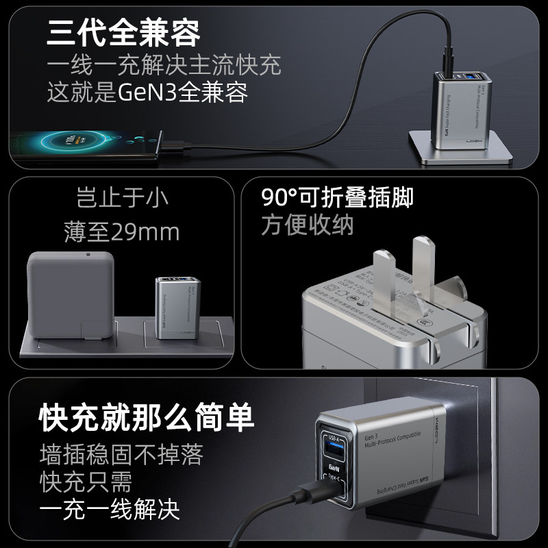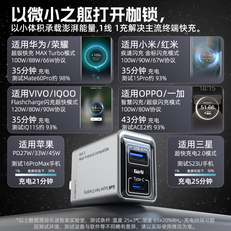 📚 乐迪智美三代升级全协议氮化镓充电器超级闪充适用小米vivoiqoo华为荣耀一加oppo红米三星苹果折叠插脚充电头
