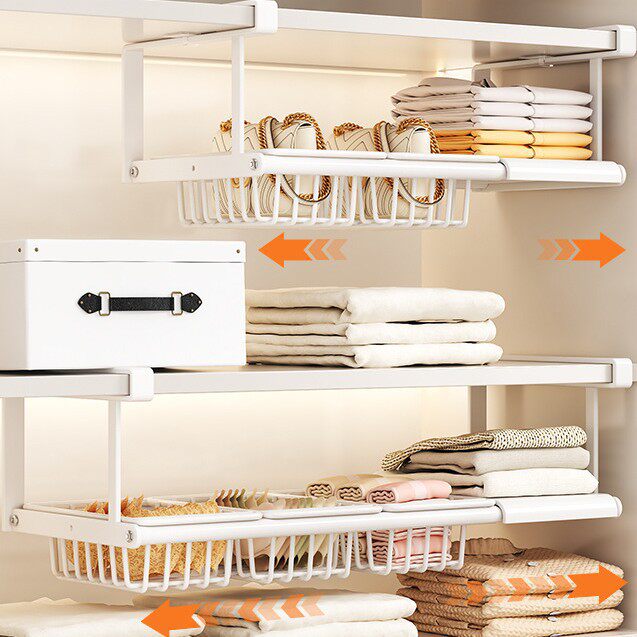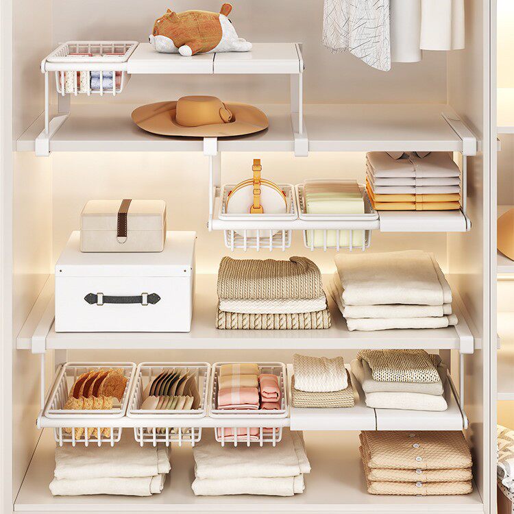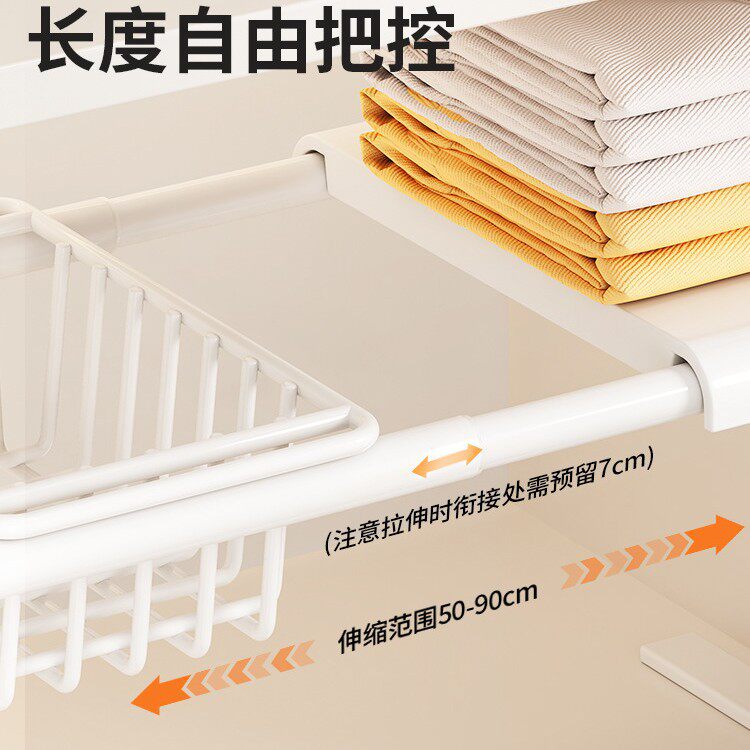 📚 奶油白衣柜隔板分层架可伸缩设计橱柜鞋柜收纳置物 灵活调节层高