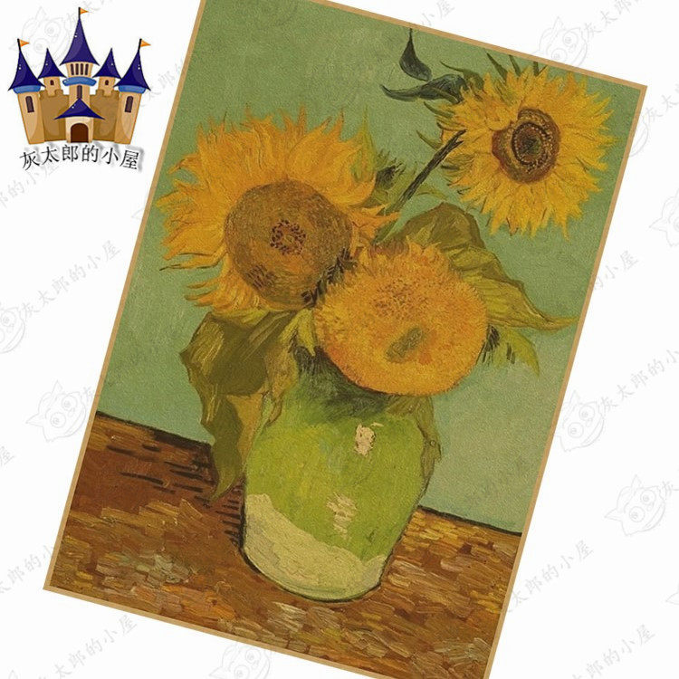 📚 梵高 星空 向日葵牛皮纸海报世界名画油画寝室客厅挂画复古装饰画