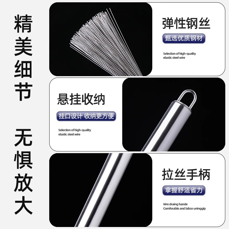 📚 不锈钢长柄锅刷厨房专用不伤锅清洁去污神器家用可挂式加长钢丝刷