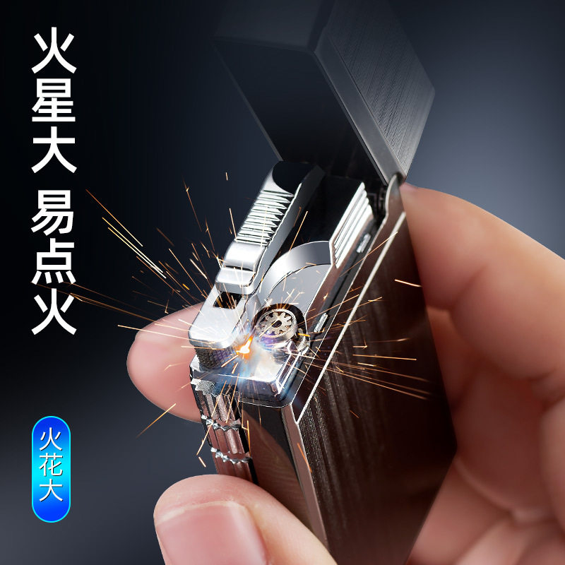 📚 精致金属锌合金拉丝侧滑MF1806侧打朗声砂轮直冲打火机防风充气款