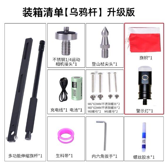📚 高视达乌鸦杆摩托车伸缩旗杆带警示灯铝合金加厚骑行装备adv改装A