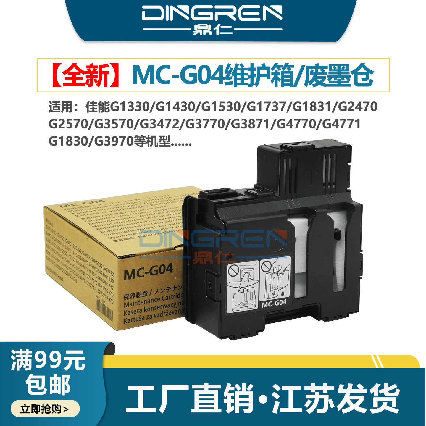 📚 适用 佳能MC-G04维护箱G1330 G1430 G1530 G1737 G1831废墨仓 收集器 G2470 G2570 G2770 G2870保养墨盒 芯片