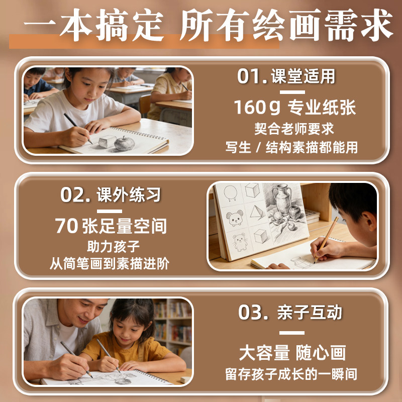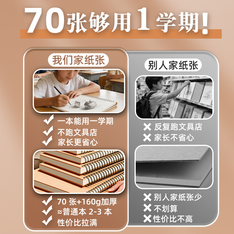 📚 160g加厚素描本小学生幼儿园专用美术本a4绘画本8K空白画画本速写本美术生初学者入门套装儿童美术画画本子