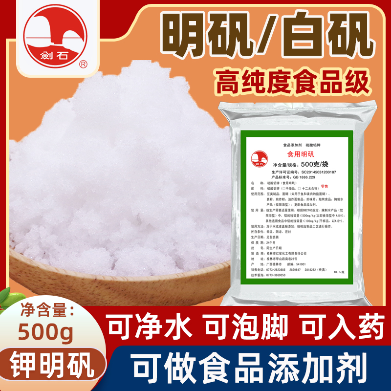 📚 剑石明矾粉500克食品级明矾净水用食用白矾炸油条中药泡脚手止汗