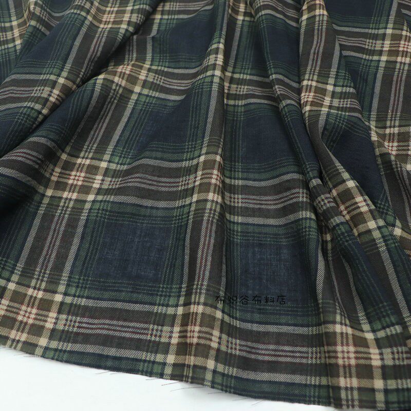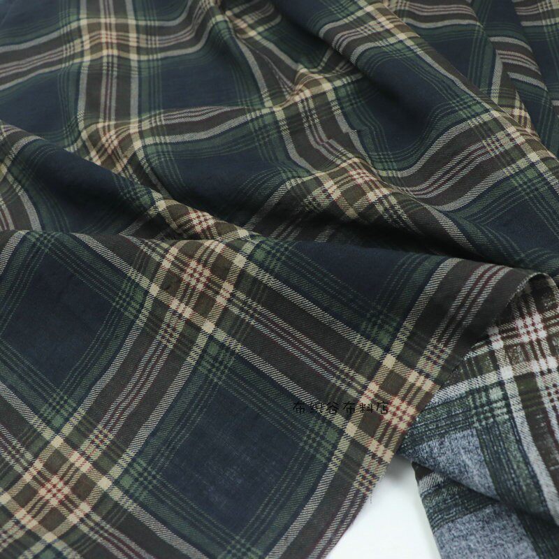 📚 日单深浅蓝咖米黑交织格子薄棉麻布料小众森系连衣裙衬衫服装面料