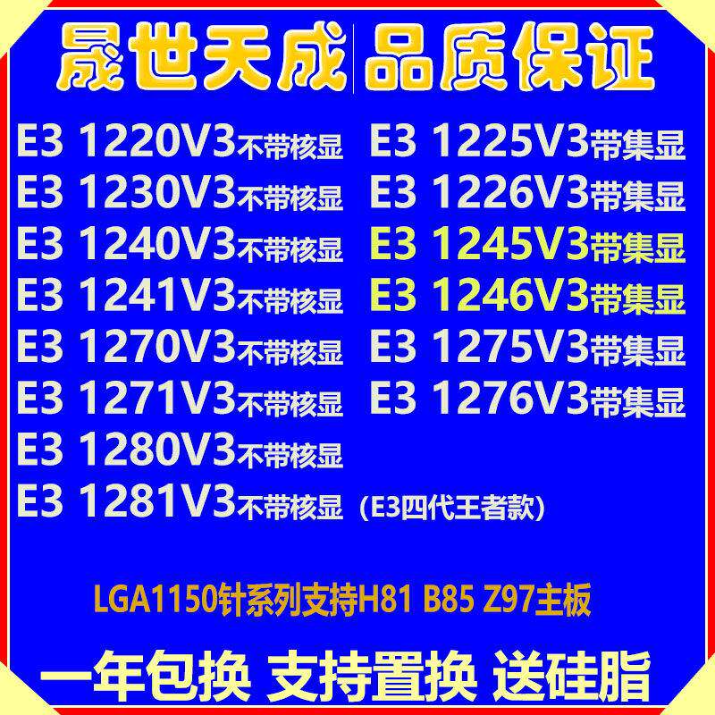 📚 E3 1225V3 1226 1245 1246 1231 1276 1275V3 1271 1285 V3 CPU