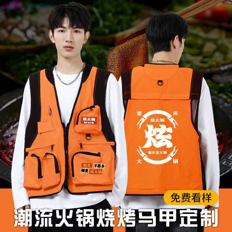 📚 国潮印lo火锅店流机能串服务作服马背心员工装餐饮工烧烤马甲定制
