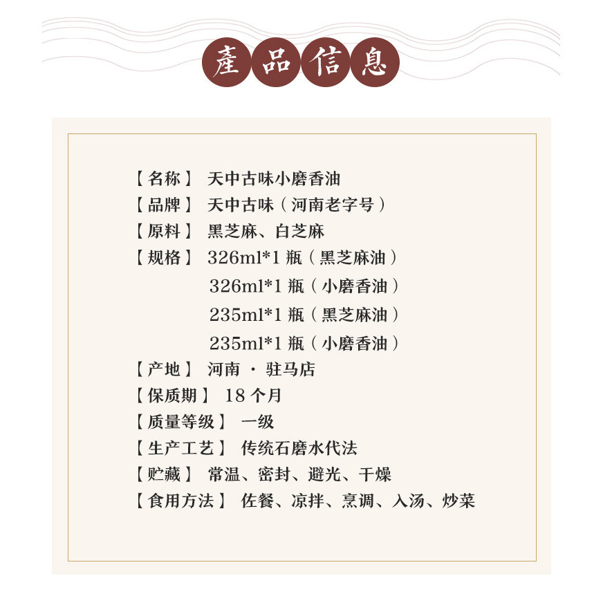 📚 天中古味 富贵香油礼盒装 河南特产传统工艺高档礼盒芝麻油1*4/提