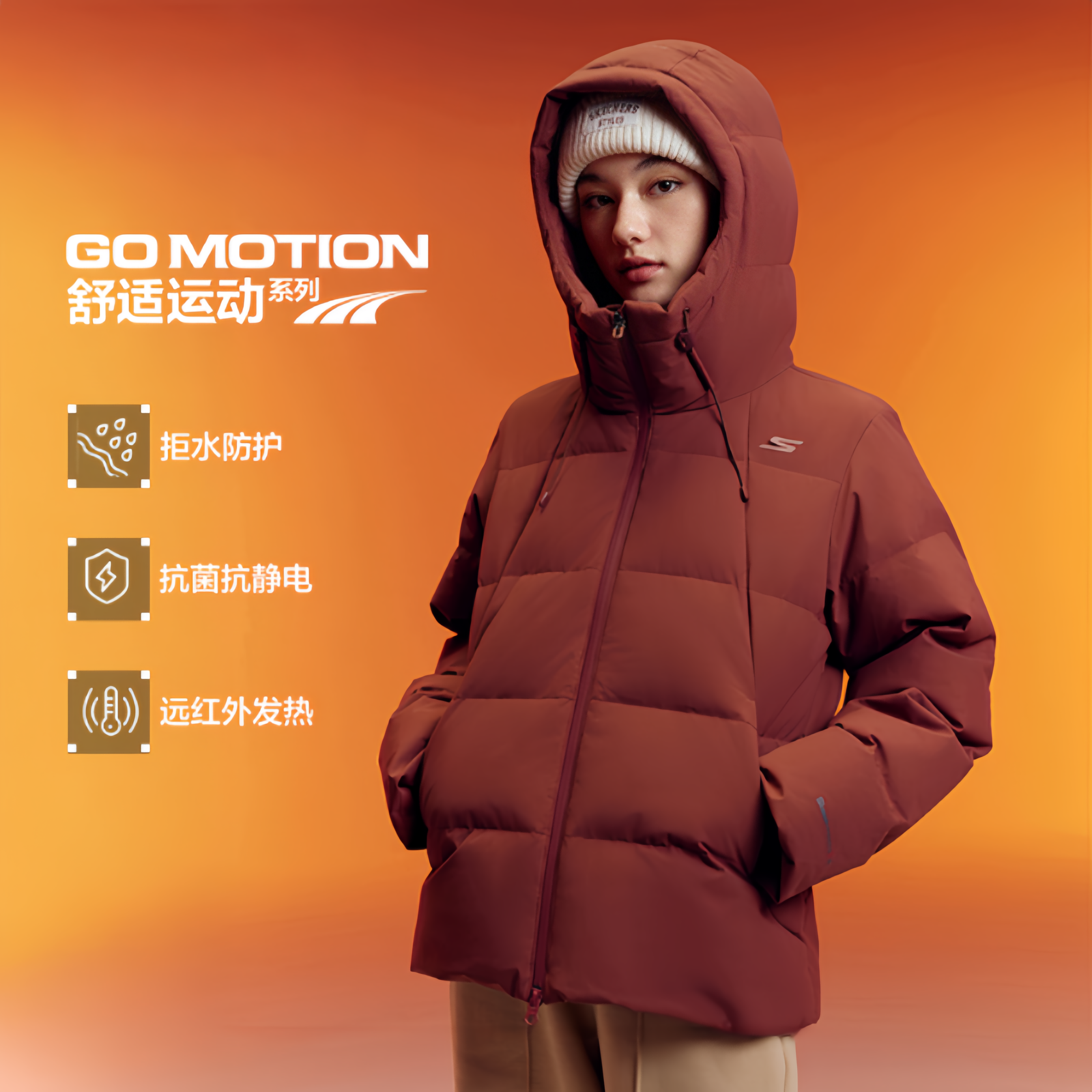 📚 斯凯奇Skechers2025新款女款秋冬季舒适运动防泼水羽绒服P425W052