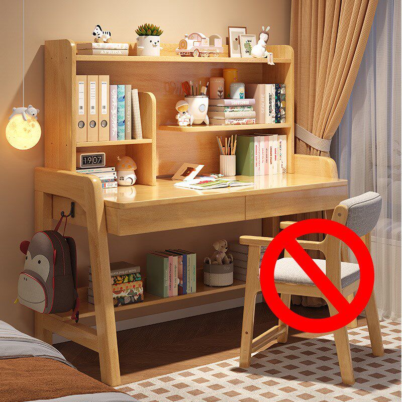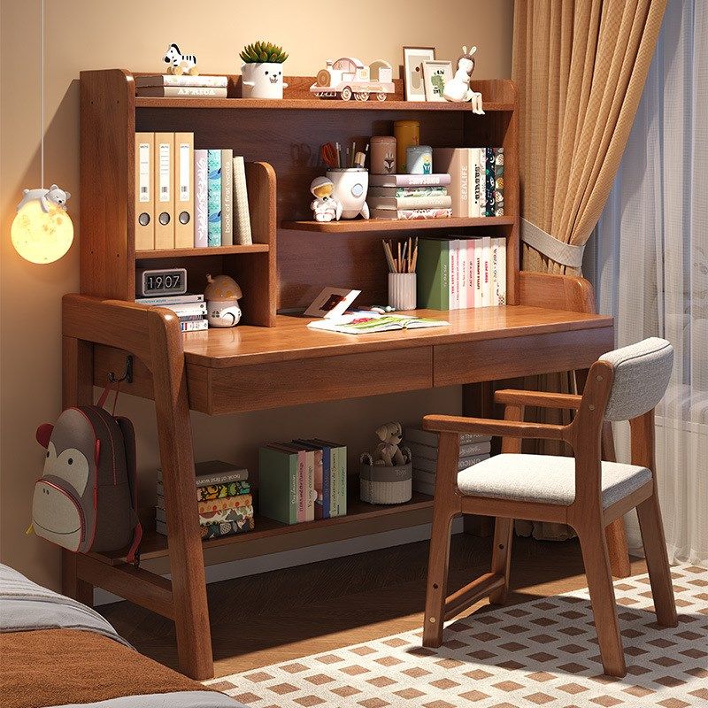 📚 高中学生实木书桌书架组合电脑桌儿童学习桌家用一体写字桌椅套装
