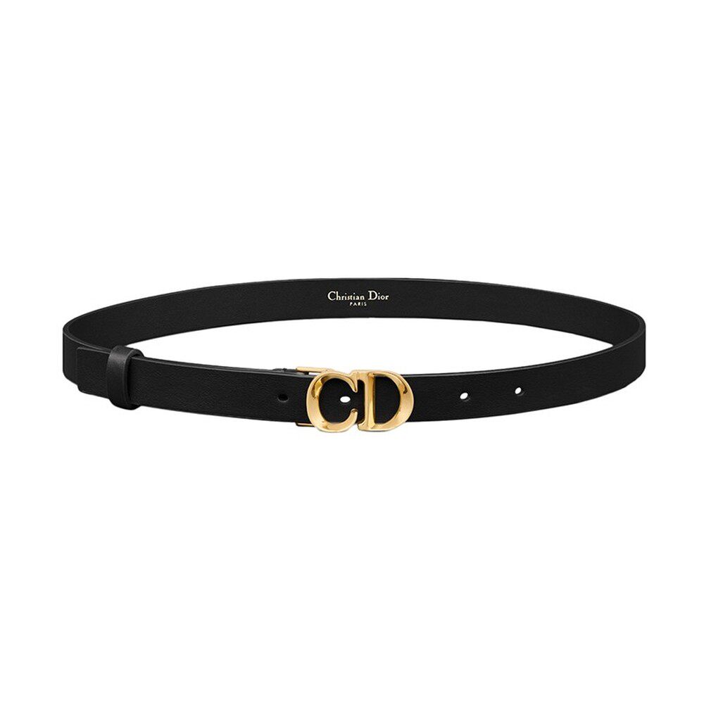 📚 欧洲直邮DIOR/迪奥24新款 女士黑色光滑牛皮光泽凹凸CD金扣腰腰带