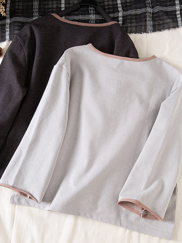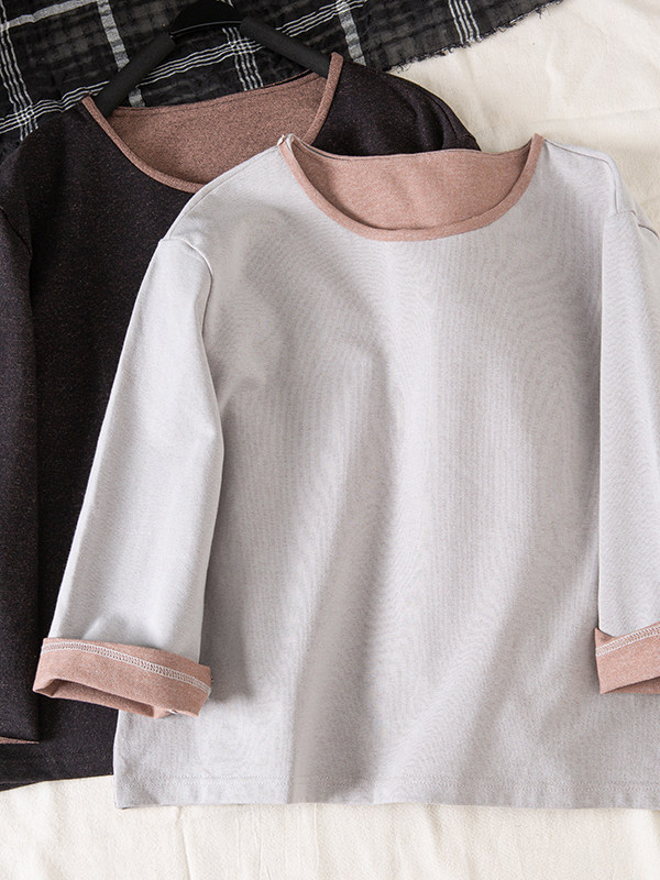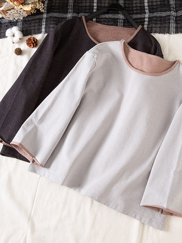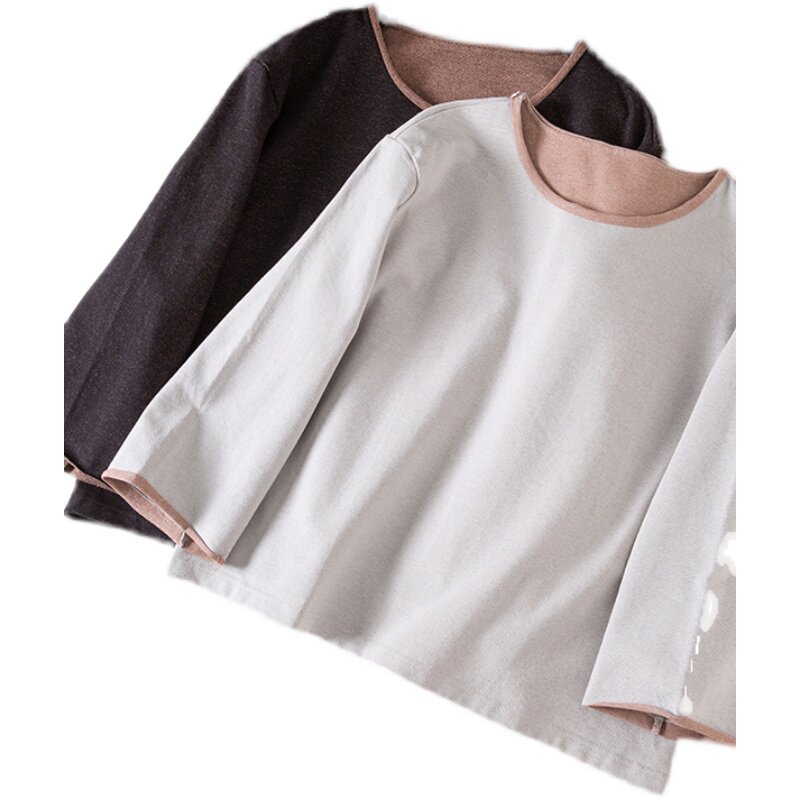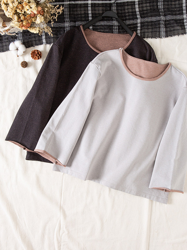 📚 2026春文艺厚实双面双色针织牛仔毛圈休闲上衣长袖套头T恤女壹旧