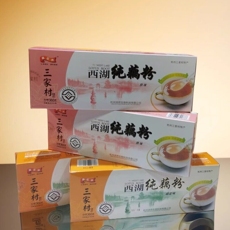 📚 杭州西湖藕粉三家村特产藕花洲冲泡纯藕粉3个囗味任选4盒礼盒包邮